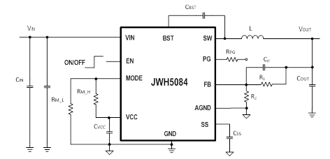 JW®H5084 是一款基于 I2 架构的单片降压开关稳压器,可实现快速瞬态响应。 JWH5084 在 4.5V~17V 的输入范围内工作,通过两个集成的 N 沟道 MOSFET 提供 12A 的连续输出电流。