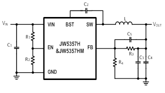 JW®5357HM 是基于 I2 架构的单片降压开关稳压器,可实现快速瞬态响应。 JW5357HM 在 4.5V~18V 的输入范围内工作,通过两个集成的 N 沟道 MOSFET 提供 3A 的连续输出电流。