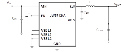JW®5712A 为由一个可充电锂离子电池、锂原电池化学物质(如 Li-MnO2)或两到三节碱性电池供电的产品提供超低功耗解决方案。 降压转换器的输出电压通过三个 VSEL 引脚设置在 0.7V 和 3.3V 之间。