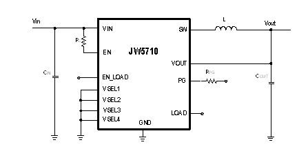 JW®5710 为由两节可充电锂离子电池、锂原电池化学物质(如 Li-MnO2)或四到六节碱性电池供电的产品提供超低功耗解决方案。 JW5710 包含一个 400nA 超低 Iq 同步降压转换器和一个转换速率控制的负载开关。