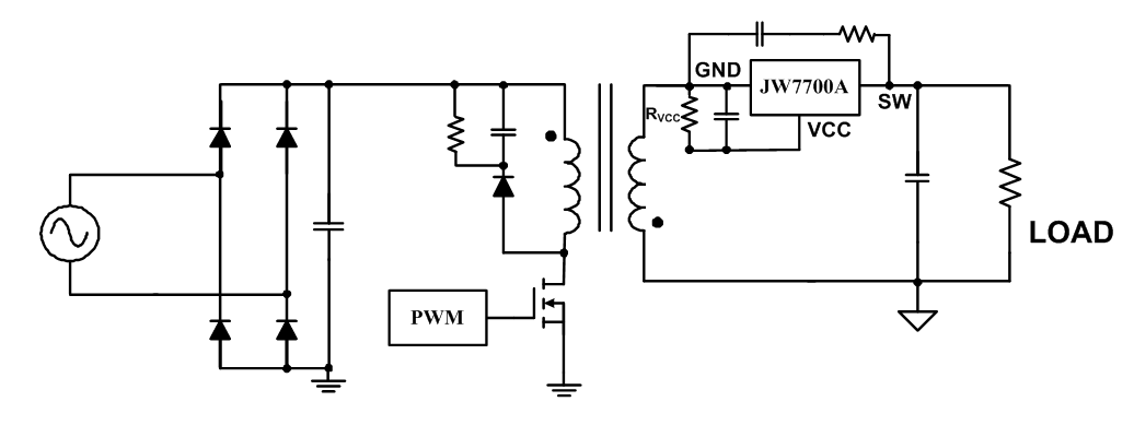 JW®7700A是用于反激式转换器的同步整流控制器,带外部MOSFET的JW7700A可替代高效肖特基二极管。 如果VSW高于-500mV或GND与SW之间的电流低于零,则信号控制外部MOS关闭。