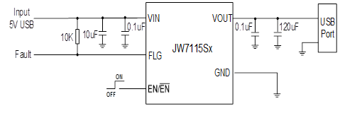JW®7115Sx 是一款单通道限流电源开关,针对通用串行总线 (USB) 和其他热插拔应用进行了优化。 控制上升和下降时间以最小化开关开/关期间的电流过冲或下冲。