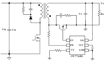 JW®7726BL 是一款同步整流控制器,用于隔离拓扑的二次侧整流,例如有源钳位反激和 CCM/QR/DCM 反激。 通过驱动外部 MOSFET,JW7726BL 与传统的二极管整流器相比,能够显着提高效率。
