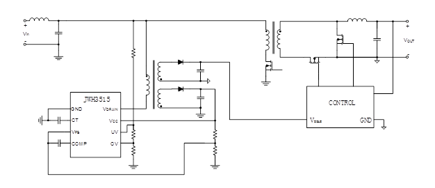 JW®H3515 是一款离线微型高压电源开关稳压器,带有片上电源开关和启动电路。 JWH3515 集成了所有的有功功率、控制逻辑和保护电路。 JWH3515 可配置为任何单端拓扑,例如正向或反激式,该控制器适用于需要高达 6 W 的应用。