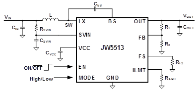 JW5513 是一款同步高效、升压型转换器。 该装置采用恒定关断时间(COT)控制拓扑。 集成的低 RDS(ON) 开关将传导损耗降至最低。