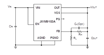 JW®M9103A 是一款降压转换器模块,内置功率 MOSFET 和电感器。 JWM9103A 基于 COT 架构,可实现快速瞬态响应。 JWM9103A 在 2.9V~6V 的输入范围内工作,通过集成的 P 沟道和 N 沟道 MOSFET 提供 3A 的连续输出电流。