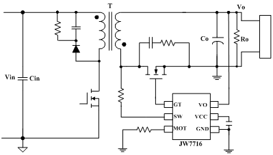 JW®7716是一款同步整流控制器,用于反激式二次侧整流。 通过驱动外部MOSFET,与传统的二极管整流器相比,JW7716能够显着提高效率。