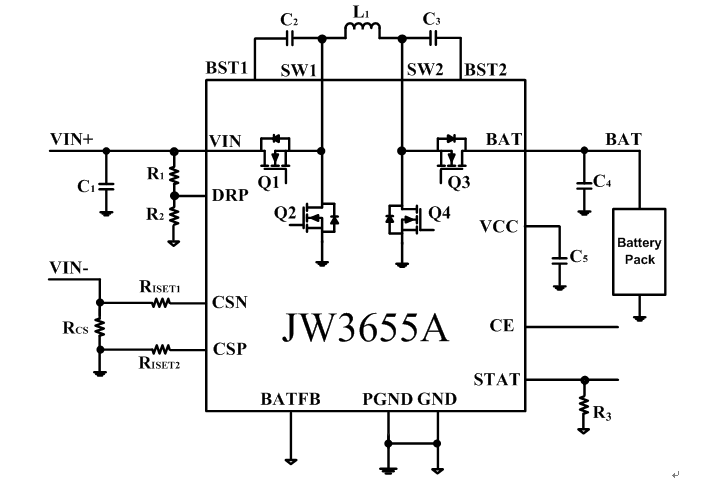 JW®3655A是一款针对HVDC快速充电系统的降压升压转换器。JW3655A支持1至3节锂离子电池,完全充电电压和充电电流可通过外部电阻编程。