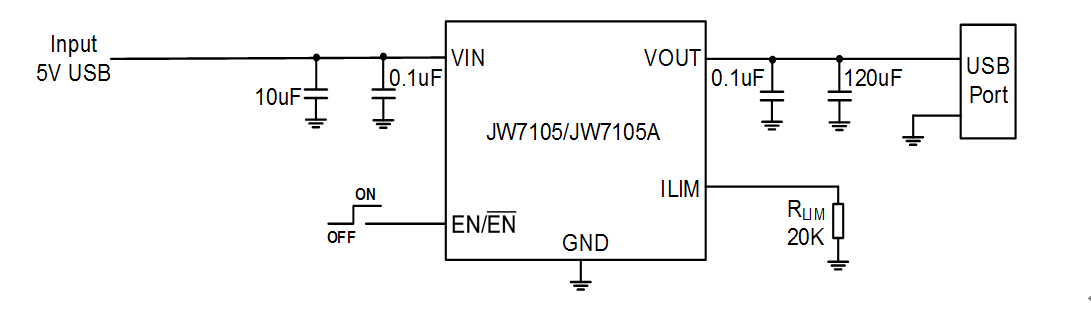 JW®7105A是一款限流可编程USB开关,针对需要精确电流限制的应用进行了优化,或在重负载/短路期间提供高达2.4A的连续负载电流。 这些器件通过外部电阻提供550mA至2.4A(典型值)的可编程限流阈值。 控制上升和下降时间以最小化开关开/关期间的电流过冲或下冲。